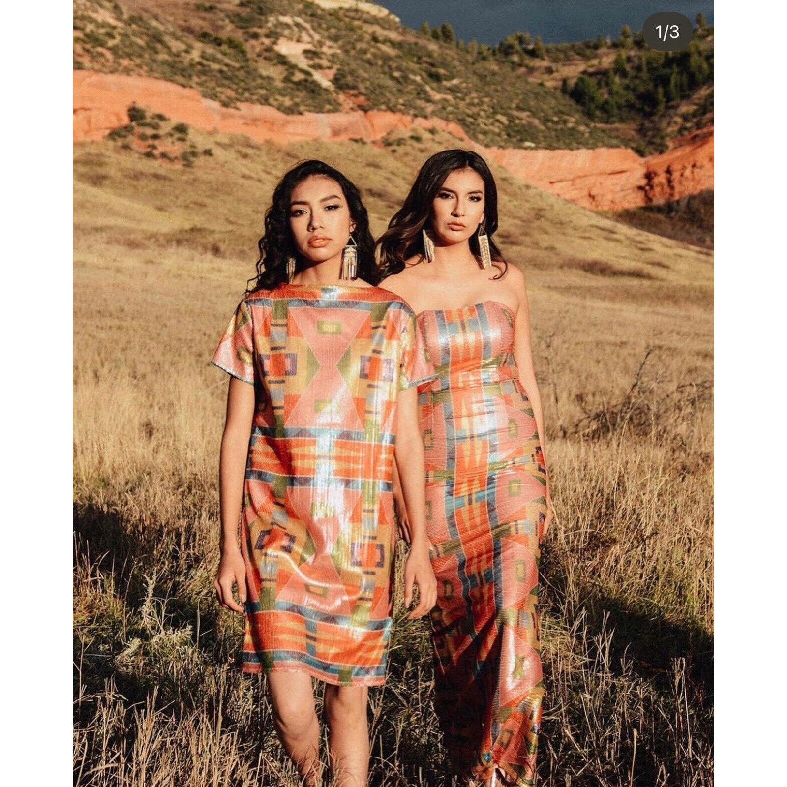 This beautiful B Yellowtail dress is a must-have for any fashion-forward woman. With its stunning Aztec print and shimmering sequin accents, it is sure to turn heads. The strapless maxi design is perfect for any occasion, whether you're attending a formal event or just running errands.